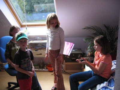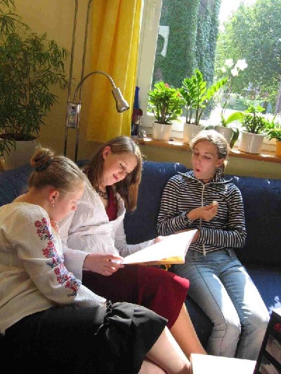 Ronja, Nora und Elena (v.l.n.r.)studieren die Geburtstags-post